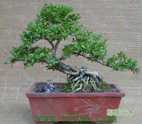 再者在樹種選擇上應以常綠和花果樹種為主。例如羅漢、五針松等松柏類,金豆、金橘等柑橘類,杜鵑類,黃楊類,還有榕樹、福建茶、九里香、赤楠、茶梅、天、梅花、雀梅、枸杞、胡頹子、六月雪、紫薇、檉柳等等。這些樹種或一年四季碧綠蒼翠,生氣盎然,或花開鮮艷,喜氣洋洋,或碩果累累,一片豐收景象,誰見誰愛,這樣盆景藝術就能適應不同層次和偏愛人群的要求。