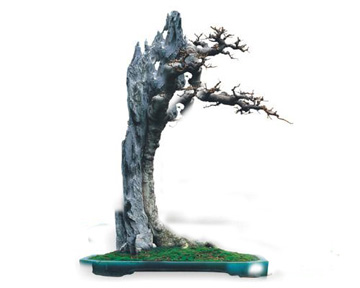 樹種不同和損傷度之異,其愈合期有長有短,經1~3個月的養護,折損枝傷口基本愈合后,可將樁景移往原處,經正常培養,一般半年后才能拆除包敷。愈合后的折損枝不僅能保持原有姿態,而且傷口處形成的疤痕又為盆景平添了古拙之韻味。