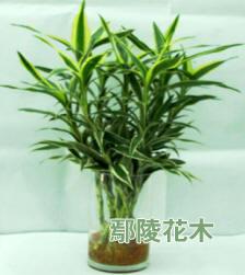 (3)瓶式盆景。截取富貴竹莖尾長約20厘米,扦插在花瓶或掛瓶中,放水深5厘米,數天換水一次,平時放在室內陰涼通風的幾案上,經久可保持葉色翠綠,別有情趣。