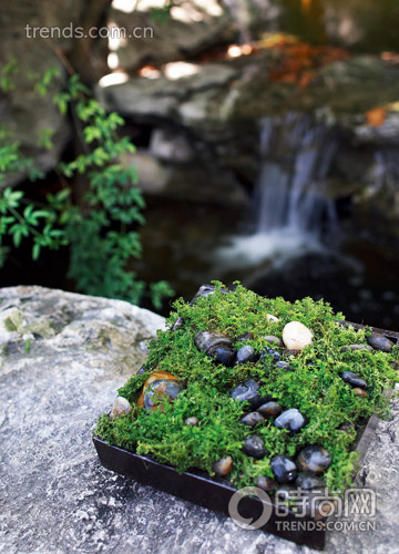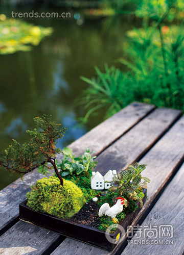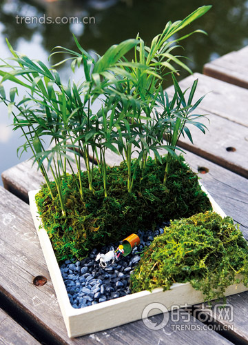 制作:往容器里先鋪上泥土,再將青龍草種下,往仍然可見泥土的縫隙中擺上小石頭,即好。