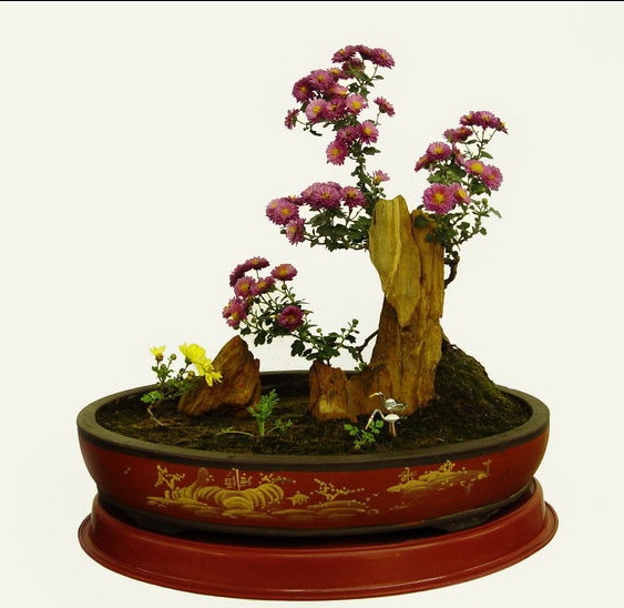菊花盆景的制作雖然有著可以遵循的方式,但無論哪種形式的菊花盆景都應該是一個賞心悅目的有機體。當然,最重要的一點是自己喜歡。
