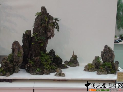 作品簡介:采用焦作當地產的砂積石作為材料進行加工成高遠式山石盆景,加工上注重石材的自然紋理,布局上講究高低錯落,主峰與次峰相互呼應,配上小女貞等植物,把太行山的幽靜、險奇表現到盆面中來。