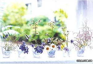 2、野趣式:以自然野花、野為原料,打破傳統的插花手法,也可以利用生活中的杯、碗、盆等工具裝花,可以使房間變得自由、清麗、脫俗、富有生氣,也可以增添家庭的和協氣氛。