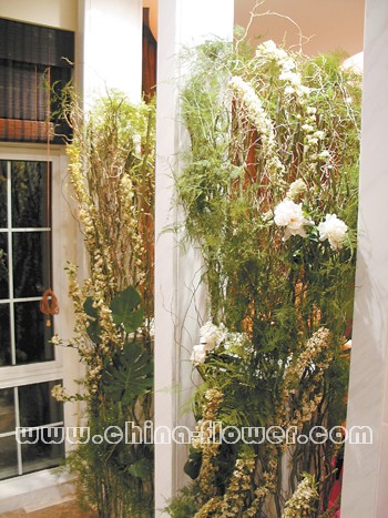 位于上海曹家渡花市的東藝行花藝館有些特別,200平方米的店內,中、日等東方插花與純歐美風格的插花作品混搭展示,正宗的哥倫比亞咖啡香從其內的咖啡吧里飄來,令人神怡。藝術總監曹藍介紹,她是將東藝行作為一個多元化插花藝術創意機構來經營的。 擁有MBA學位,在美國從事企業管理工作多年的曹藍,從大學時代就癡迷空間設計藝術和插花藝術,并多次赴日本、加拿大學習設計理論。2005年,曹藍從美國回國,為了實現自己的藝術追求,于2006年創辦了東藝行。曹藍認為,室內設計是設計師對空間的一種感悟,而對空間的把握來源于不同的生活感受。曹藍在國外多年,喜歡古典音樂又同時愛好爵士樂。對建筑藝術、品牌產品都非常感興趣。這種生活經歷體現在她的花藝設計中,使得同一件作品中既突出了歐洲的古典,又表現了美式的自然、簡潔,還有一些東方式插花的雅致和韻味。 多元化是東藝行崇尚的設計風格。由于常年在國外生活,曹藍與歐洲、美國的花藝師建立了合作關系,她的姐姐在日本學習小源流插花多年,也被請到了店內成為駐店花藝師。另外,還有一些臺灣的花藝師也常年為東藝行服務。代表世界多種花藝風格的花藝師匯聚,為花藝工程的多元化設計提供了可能。東藝行承接到新工程后,在曹藍統一設計風格下,擅長這種風格的花藝師就會拿出自己的設計方案,將相應的花藝設計糅合進去。例如上海勞力士表行的花藝設計工程,就由東藝行一位來自臺灣的簽約花藝師設計完成。簡約、自然的風格與表行非常搭配。 曹藍要求花藝師用自己的思想和審美情趣去理解客戶的需求。例如在一場別墅設計工程中,她看到別墅擺放著許多昂貴的達芬奇家具,主人希望營造富麗、氣派的氛圍,但缺乏整體設計。如果用搭配這種風格的常規花材如玫瑰、大百合和古典花瓶,就會顯得有些俗氣。于是曹藍打破常規,用枯樹枝、野花、智利小百合等花材搭配,在達芬奇家具營造出來的富貴氣氛中加入“野”的感覺,并擺放了一些半透明的厚重玻璃花器和中國瓷器“壓韻”,同時在適合的位置點綴了一些日式插花小品。多元化的巧妙混搭,使整體空間充滿了一種活躍的律動感。 對于花藝設計的理解,曹藍認為做花藝設計不能“為了花而花”,她鼓勵設計師把個人的心境融入到設計藝術中。在花藝工程里,選材到擺放都應體現出自然的感覺。無論是單一的自然植物、人造花卉、金屬介質、玻璃材料、天然石材,或是把他們組合在一起,成為一個大型空間作品,都應力求激發美好的遐想,體現出無限的生機和創意。在花藝技法中,曹藍崇尚“日本的、德國式的工業化般精致的技術”,追求精巧的花藝手法。“我希望我們的作品,每一個面都是可以欣賞的。不會有哪個部位因為粗糙而需要隱藏起來。”曹藍說。