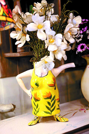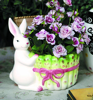 著長裙的婦女明顯發(fā)福,明黃色的裙子讓身材更加“凹凸”,而一手叉腰,一手舉起的姿勢仿佛在表現(xiàn)著什么。這個可愛的“女人”頭上就是插花口,就算放入一束簡單的花,也能給觀者帶來不錯的心情。 價格:38元發(fā)現(xiàn)地:朝陽區(qū)麥子店西街“繪聲繪色歐式家居館” ![]() 小白兔應(yīng)該是愛花族吧,和鮮花形成美妙的組合。兔子含笑地捧著花盆,仿佛在展示著花朵的美麗,也在展示自己的可愛。此款花瓶最適合可愛的女生,擺在書桌上或是化妝鏡前,一定會帶來意想不到的生動。 價格:38元 發(fā)現(xiàn)地:朝陽區(qū)萊太花街6號“魚西美屋”