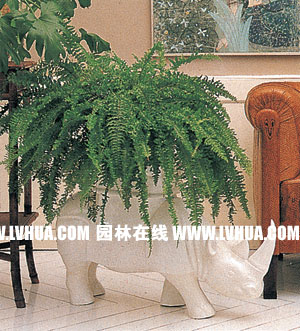 動物趣味容器 單種植物如腎蕨坐在單色動物容器上,讓人感到幽默愉快。