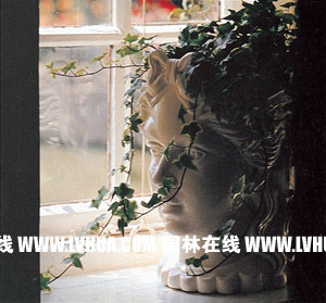 雕塑容器 常春藤和雕塑頭像融合得如此默契,成一件完美的藝術品。