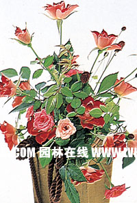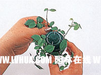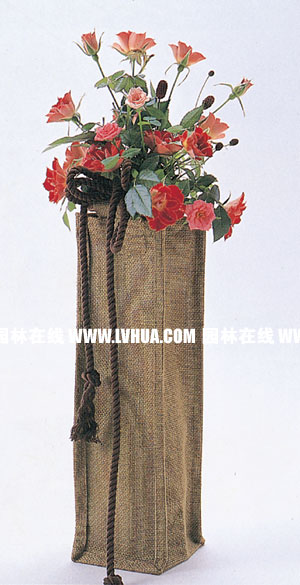3. 將插花放入粗繩子中,并用一個麻袋將它套起來。
