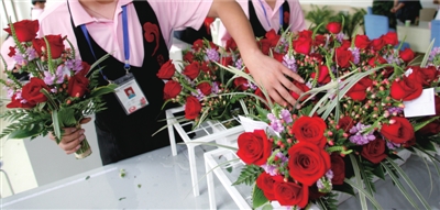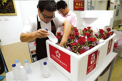 昨天11點(diǎn)5分,奪得北京奧運(yùn)會(huì)首金的捷克運(yùn)動(dòng)員站在領(lǐng)獎(jiǎng)臺(tái)上向觀眾揮手致意,她手中的“紅紅火火”——奧運(yùn)頒獎(jiǎng)花束隨之?dāng)[動(dòng)。整個(gè)過程僅僅1分鐘,但這束頒獎(jiǎng)用花的主花材從云南基地“走”到頒獎(jiǎng)臺(tái)至少需要兩天。其間,防壓、制作及防腐等工作要做到細(xì)致入微,呵護(hù)備至。 每箱500扎,每扎10枝花案頭一把尺,量準(zhǔn)40厘米 8月7日下午,為制作奧運(yùn)賽程第一天的奧運(yùn)花束,云南奧運(yùn)花卉基地當(dāng)天采摘下新鮮的“中國(guó)紅”月季,隨后立即將其送往機(jī)場(chǎng)。 奧運(yùn)花卉配送中心執(zhí)行總經(jīng)理林鳳軍說,每箱放著500扎,每扎10枝花,而以往花卉多為每扎20枝,“這樣可以避免花朵被擠壓”。同時(shí),航空公司也為花材運(yùn)輸開辟綠色通道,“最晚上飛機(jī),到北京后最先下飛機(jī)”。鑒于花材在途中及制作過程的損耗,這次空運(yùn)仍多運(yùn)了20%。 記者看到,每扎花的長(zhǎng)度差別不大,左右不過1厘米,且都有牛皮紙包裹。從云南主花材基地到北京大約飛行3個(gè)小時(shí),轉(zhuǎn)運(yùn)到北京的配送中心總共需要6個(gè)小時(shí),之后立即送入冷庫(kù)保存。 “紅紅火火”主要由9枝“中國(guó)紅”月季組成。在中國(guó)傳統(tǒng)中,9被譽(yù)為至尊,代表著生生不息,同時(shí)還蘊(yùn)含著長(zhǎng)長(zhǎng)久久之意。配花、配葉則選用了6枝火龍珠、6枝假龍頭、6片芒葉、6片玉簪葉和6片書帶草,這些花材均由6枝(片)組成,取一帆風(fēng)順之意。 8月8日上午剛過8點(diǎn)半,位于草橋的奧運(yùn)花卉配送中心開始忙碌起來。 昨天剛從云南運(yùn)抵此的主花材被送到了制作間——一間約300平方米的大花房。冷庫(kù)的溫度控制在5℃到8℃,而制作室的溫度約20℃。 花束的制作采用流水線作業(yè),分為花材整理、制作、保鮮、包裝及驗(yàn)收裝箱等5個(gè)步驟。奧運(yùn)會(huì)期間,所有的頒獎(jiǎng)禮儀用花都在這里制作。制作人員由5名現(xiàn)場(chǎng)園藝指導(dǎo)和50多名奧運(yùn)頒獎(jiǎng)禮儀用花專業(yè)志愿者組成。 除了花材整理外,每張工作臺(tái)上都附有尺子,且每把尺均為40厘米長(zhǎng)。花藝師梁勤璋說,奧運(yùn)花束整體高度要求40厘米,“一方面是為了方便運(yùn)動(dòng)員手拿,拍攝時(shí)不會(huì)擋臉;另一方面是因?yàn)轭C獎(jiǎng)用的禮儀托盤容量有限”。 下午1點(diǎn)半,20多名志愿者開始正式制作8月9日的奧運(yùn)頒獎(jiǎng)用花。8月9日當(dāng)天共產(chǎn)生24枚獎(jiǎng)牌,而他們需要完成29束,“多出來的5束是‘替補(bǔ)’”。下午4點(diǎn)左右,奧運(yùn)花束制作完畢。 8小時(shí)保鮮,隨時(shí)要補(bǔ)妝 按照奧組委的要求,所有頒獎(jiǎng)花束要提前4小時(shí)進(jìn)場(chǎng)館。 梁勤璋最擔(dān)心的是花束進(jìn)場(chǎng)館后的保鮮問題,“我們這兒(奧運(yùn)花卉配送中心)有嚴(yán)格的溫度控制,但場(chǎng)館里達(dá)不到這樣的要求。很多場(chǎng)館是露天的,沒有空調(diào),這不易于花束的保鮮”。 為此,花束在制作完成后,會(huì)被放進(jìn)塑料泡沫箱。每個(gè)泡沫箱內(nèi)可直立地插放4束鮮花,并在箱內(nèi)放置裝冰塊的凹槽。 “我們要把總時(shí)間控制在6至8個(gè)小時(shí)內(nèi),這樣才能保證花束的新鮮。”梁勤璋說,8月9日一早,第一車奧運(yùn)頒獎(jiǎng)用花被運(yùn)往北京射擊館。 奧運(yùn)花卉配送中心共有15輛奧運(yùn)頒獎(jiǎng)花專用配送車。每車除了司機(jī)還將有一名志愿者“護(hù)花”進(jìn)入場(chǎng)館,“他們也是受過嚴(yán)格訓(xùn)練的專業(yè)花卉技術(shù)人員,在花束送到運(yùn)動(dòng)員手中之前,再檢查花束有沒有出現(xiàn)打蔫、變形、脫瓣等情況,并隨時(shí)用替補(bǔ)花為花束‘補(bǔ)妝’。”林鳳軍說。