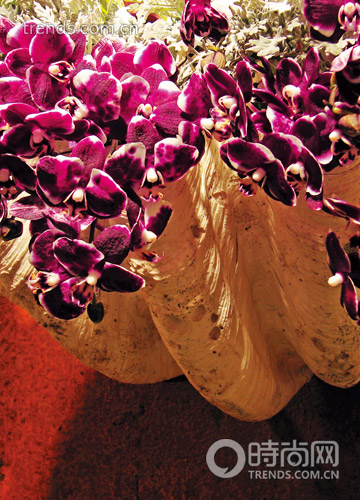 把大車渠貝掛在墻上,里面放進花泥或是水瓶就是個好花器,色彩濃烈的蝴蝶蘭在色彩上顯眼而高貴。