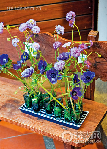 用過的瓶瓶罐罐、旅行帶回來的貝殼、盛滿清水的盤子……信手拈來的材料,日常生活中平常的器皿,與各樣的花材搭配在一起,帶來的,竟然是獨具性格的美麗。