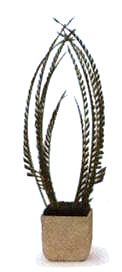 2 隨后由高而低,再補插入6片散尾葵葉,以增加彎拱的厚度。