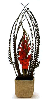 3 在彎拱的中間插入幾支紅色的唐菖蒲。