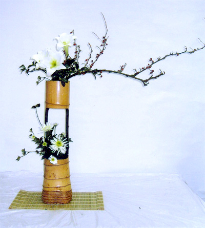 崇尚自然、師法自然而高于自然是中華民族傳統文化藝術尤其是造型創作的共同指導思想,重形尚意,追求以形傳神、形神兼備、情景交融而深邃的意境美則是其創作的最高目標。作為中華優秀古老文化一部分的傳統插花藝術,它在許多方面都很好地把握并體現了中國傳統美學的這些精髓,并不斷發揚光大。例如在選用花材上,中國傳統插花對待每一片葉、每一花枝都是順其自然之勢,或直或曲、或仰或俯,巧妙組合,使之各得其所,彼此和諧共處斗起i宛如生長在自然之中,充滿了蓬勃的生命力,毫無刻意造作之氣。即使修剪,也不顯露人工痕跡,都是很好地將各種花材的自然美構成了人工裝飾美,是大自然的濃縮與升華,這正是中國傳統藝術“形肖自然”理論的典型體現。又如中國傳統插花的構圖中無論采用對稱式造型還是不對稱式造型;都遵循既有形式又不拘于形式,既規范而又不規范化的法則,對于花材的剪截組合以及與容器的比例關系雖定為7:5:3近似黃金分割率的尺度,但對每個花枝的位置伸展方向與角度絕無固定程式和嚴格要求;是以順乎花枝自然之勢富有自然之趣以及合乎自然之理為原則,而在保存花材原有自然形態之下,靈活插制,隨意造型,達到“雖由人作,宛白天開”的境界。表現了構圖上的自由活潑,形式上的豐富多樣的變化性。 中國傳統插花雖然崇尚自然,追求花枝自然情趣,但是絕不是自然主義的單純模仿、抄襲自然或只注重花材在形、色上的自然屬性美的展現,而是通過對花材形態特征、生態習性的觀察與感受,萃取精華,傾注情感,并采用比興手法,運用花材的寓意和象征性或諧音、諧意等,借以表達作品的主題內涵與神韻意趣,以有限的形象表達無窮的景外之景、弦外之音,充分表現了構思上豐富的思想文化內涵與深邃的意境之美,這種運用詩的意境、畫的構圖的創作手法,大大增強了作品含蓄而又回味無窮的藝術魅力與雅俗共賞的多樣性,從而形成了其獨特的藝術風格與特點。