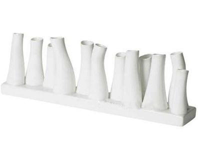 這個(gè)花瓶采用多頭設(shè)計(jì),有7頭和12頭兩種,也就是說一個(gè)花瓶擁有7個(gè)或12個(gè)小花瓶。每一個(gè)小花瓶外形都是不相同的。這樣的設(shè)計(jì)好處就是能根據(jù)不同花卉的要求處理生長狀態(tài)。