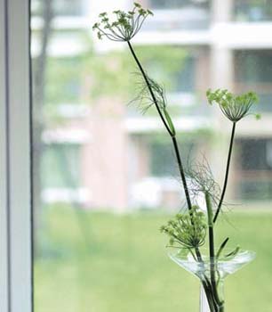 層層疊疊的插花手法會打亂恬淡的心情,簡單素雅的插花才適合這個季節的窗邊風景。