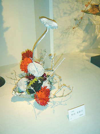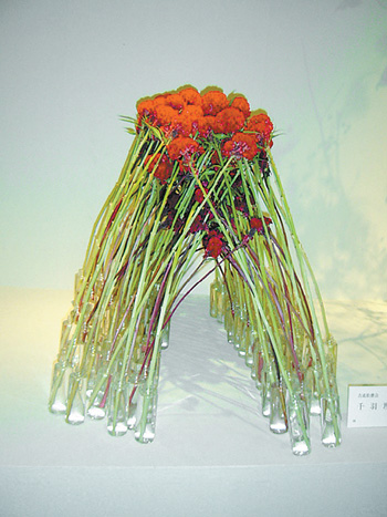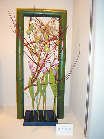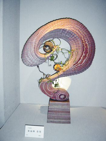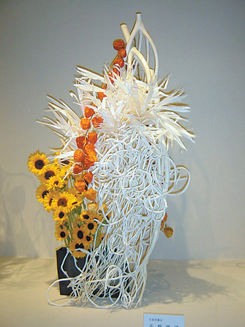古流松藤會插花 古流松藤會插花流派于1916年創立,在發展日本傳統插花“生花”的藝術風格同時,導入了“自由花”的概念,它是為迎合現代生活環境和新的感覺而產生的樣式。“自由花”雖不像“生花”有既定的比例、形狀,是插花人發揮個性的自由創作,但也不能無視基本法則,在自由形狀中也要遵守一定的平衡、動感和空間構成,同時,要考慮整體的構圖、立體感以及花、葉、枝、果實的色彩要素。
