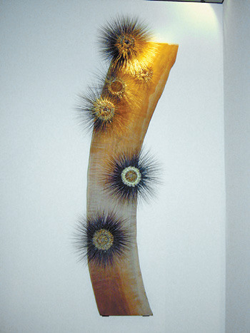 花材:向日葵、干燥楮枝、干燥藤蔓。