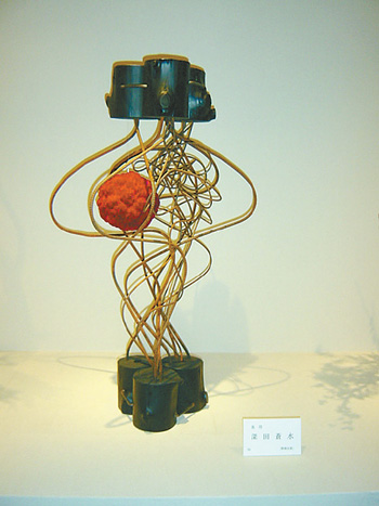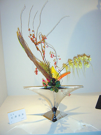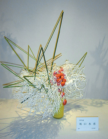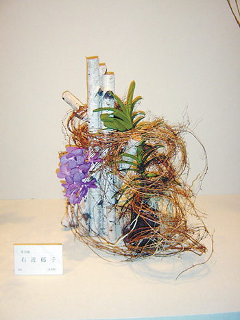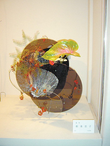 池坊插花 日本的花道最初是以佛前供花起源的,而池坊是日本插花的鼻祖,也是最傳統的花道,所以它的作品給人一種很嚴肅正統的感覺。而此次古典插花展上,池坊作品多為自由花,其特點是在追求傳統的美感和以傳統構造為基本的同時,使用了更多的異質花材,突出了現代審美意識。