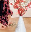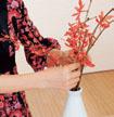 1. 選 5 枝紅蘭,每只紅蘭可以剪成 2 枝來用。插進瓶口時不要過于平均,稍微有點稀疏緊密的不均,反而容易突出色彩的主次。