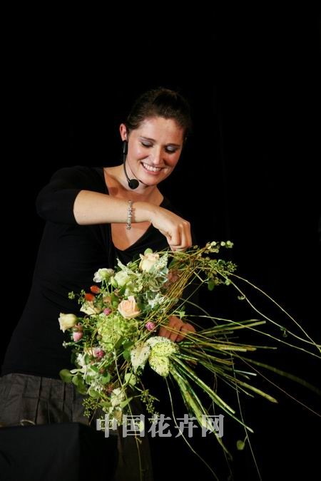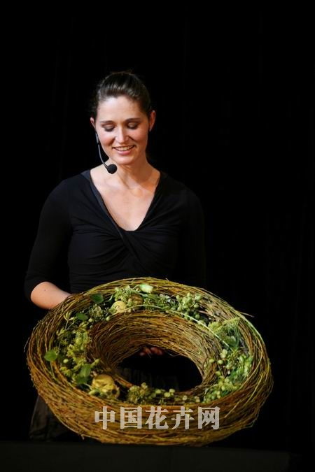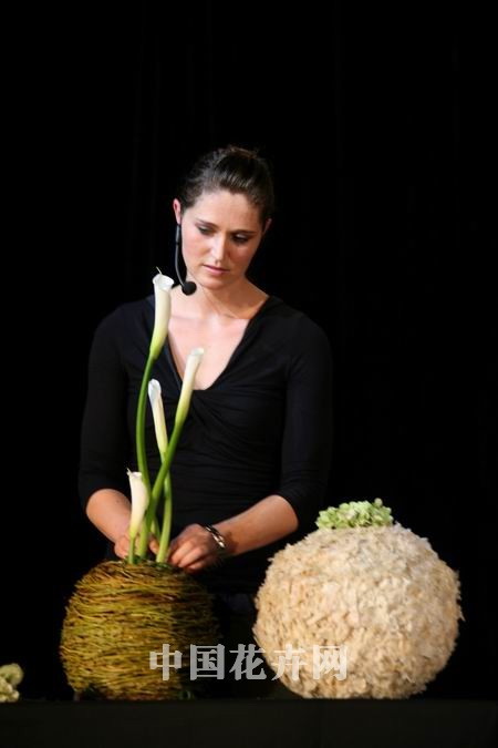 年紀輕輕的西蒙娜曾經在德國、新西蘭的花卉公司和花藝工作室學習7年的花藝,目前在德國威特爾擔任花藝老師,出版影集和書籍,還同時在德國40余家花藝工作室擔任鮮花設計指導。深厚的基本功和嫻熟的技巧,讓一個小時的表演如行云流水,于純凈風格中也展現了德國花藝的豐富內蘊。