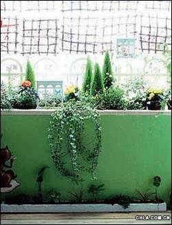 面朝西的陽臺,夏天受陽光照射時間比較長,溫度較高,如果能種牽;ā⒔疸y花、爬墻虎和紫藤等藤本植物,攀附在用木搭成的棚架上,引附在墻面上,就能開成一道綠色的垂簾,既可遮擋陽光,又可以使房內光線柔和,還可以使人觀賞美麗的花朵。如果陽臺朝南,光照時間長,可以養些喜歡陽光的花草,如米蘭、茉莉、扶桑、月季等,夏秋季節,鮮花怒放,滿臺生香。如果陽臺朝東,最好種些蔓生植物,像凌霄、蔦蔓等,也可種點絲瓜、眉豆、小葫蘆等農家植物,這樣既能擋陽光,又能收點果實。如果陽臺朝北,可以種些耐陰或半耐陰性植物,比如文竹、萬年青、仙客來、蘭花、四季海棠、吉祥草、韭蘭等花卉,這此植物清幽雅致、情趣盎然。