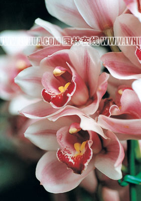 大花蕙蘭有大、中、小型的區分,大型品種是由原產于緬甸和印度等熱帶亞洲地區的原生種改良而來,不僅花朵大,而且莖的姿態也顯得高貴傲然。中、小型品種來源于大型品種的改良雜交種,與大型品種相比較,色彩稍稍差一點,但秀雅的莖瓶插效果也很好。