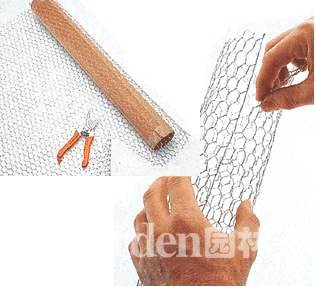 1.將絲網(wǎng)圍著瓦楞紙棍作成苔蘚柱。絲網(wǎng)比紙宜寬5厘米,圍合即成。