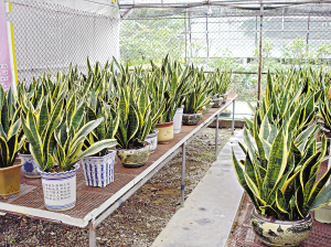 廣東省農(nóng)科院花卉研究所副研究員王代容介紹說,金邊短葉虎尾蘭等環(huán)保植物最受歡迎。普通的一盆才10元,而且非常好養(yǎng),澆水就可以了。
