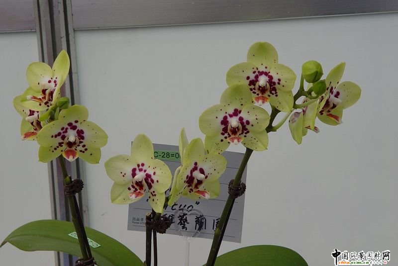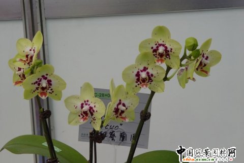 蝴蝶蘭的學名按希臘文的原意為“好像蝴蝶般的蘭花”。它能吸收空氣中的養分而生存,歸入氣生蘭范疇,可說是熱帶蘭花中的一個大族。它的植株非常奇特,既無匍匐莖,也無假球莖。每棵只長出數張活象湯匙般肥厚的闊,交互疊列在基部之上。白色粗大的氣根則露在葉片周圍,有的攀附在花盆的外壁,極富天然野趣。到了新春時節,一枝長達盈尺的花梗就從葉腋抽出,然后一朵接一朵地開放。每花均有5暮,中間嵌鑲唇瓣。花色鮮艷奪日,既有純白、鵝黃。絆紅、也有淡紫、橙赤和蔚藍。有不少品種兼備雙色或三色,有的好像繡上圖案的條紋,有的又有如噴了均勻的彩點,每枝開花七八朵,多的十二三朵,可連續觀賞六七十天。當全部盛開時,仿佛一群列隊而出的蝴蝶正在輕輕飛翔,它那種飄逸的閑情,真令人產生一種如詩如畫,似夢似幻的感覺。