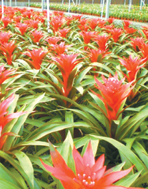 特性:果子蔓鳳梨,大株型。穗狀花序鮮紅色;苞片呈管狀