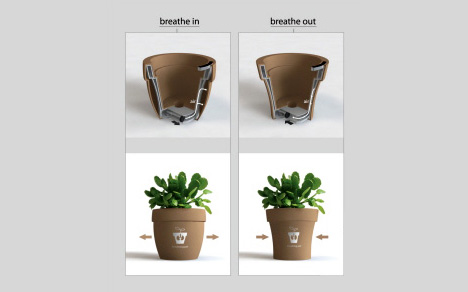在家里或辦公室里種上幾盆植物是一件既愜意又環(huán)保的事情,但是有些人由于工作忙碌卻經(jīng)常忘記給自己種的植物澆水、曬太陽。為了幫助人們更好的照料自己的植物,就有設(shè)計(jì)師設(shè)計(jì)出了這樣一款會“呼吸”的花盆。