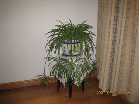 吊蘭,又名折鶴、紫吊蘭、鴨跖草等,是常綠宿根草本花卉條形或披針形,長20—45厘米,莖部包莖,根葉均似蘭花,花梗橫升倒懸,宜懸空憑虛,故而得名吊蘭。常見的品種有:葉子邊緣金黃色的金邊吊蘭;葉子邊緣銀白色的銀邊吊蘭;葉子中間黃白玉色的玉心吊蘭等。吊蘭雖稱不上名貴花卉,但吸收空氣中有毒化學(xué)物質(zhì)的能力在花卉卻首屈一指,效果甚至超過空氣過濾器。在空調(diào)房間里只要放一盆吊蘭;在24小時內(nèi),便會神奇地將室內(nèi)環(huán)境中的有異味的一氧化碳、過氧化氮和其它揮發(fā)性氣體吸收得精光,并將它們輸送到根部,經(jīng)土壤里的微生物分解成無害物質(zhì)后,作為養(yǎng)料吸收。因此,空調(diào)房間用吊蘭裝飾,既能增添一份情趣,又能增加一分安全,可謂一舉兩得。