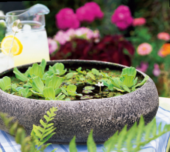 無論春季還是盛夏,你可以隨時制作你的小水景。為了保證植物健康生長,注意將它擺放在每天日照超過6個小時的地方。夏季水份蒸發很快,注意給盆栽蓄水。
