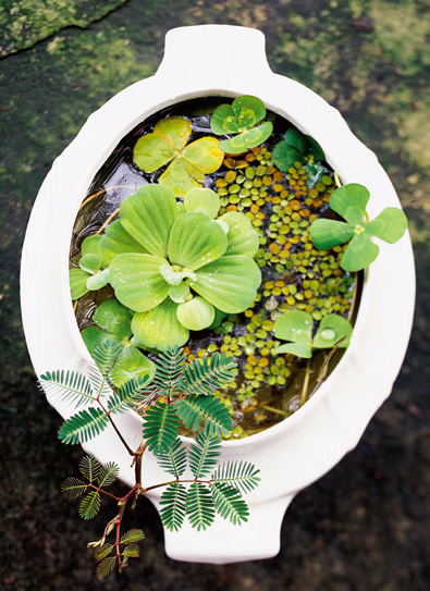 不必為沒有池塘或噴泉而遺憾,一點點創意加上很少的花費,你就能組合出一個迷你水世界!不受空間大小的約束,露臺一角、餐桌中央,甚至是書桌之上,都是擺放盆栽水景的好地方,讓你隨時隨心享受綠色清涼!