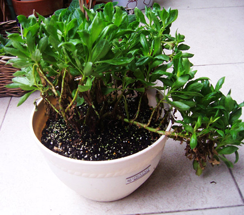 十月份買的6.5公斤重的翠筠靚土,現在已經所剩無幾,每次給花換盆或給新來的植物裝盆的時候總是惡狠狠地想:費我這么多土,你們也好意思長這么小一株!這些悲慘地脫離了地面的植物進入花盆就變得很嬌氣。就好像從前鄉下的日子粗簡卻舒服,城里的日子總之是欲壑難填。為了讓它們的葉子綠一點,或者肯活下去,我得考慮各種繁瑣的東西,赤玉土、鹿沼土、珍珠巖、煤炭渣、骨粉、硫酸亞鐵……話又說回來了:你們也好意思長這么小一株!