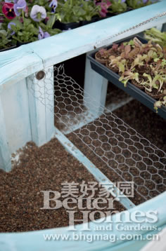 和溫室一樣,防寒箱延長了植物在冬季的種植時間。陽光透過玻璃窗溫暖里面的植物,結(jié)實的箱體可抵擋外界的寒冷和大風。你可以在早春最后一次霜凍前種植一年生植物,之后慢慢抬高箱蓋,吹入冷風讓植物逐漸適應外界寒冷;蛘咴诙臼斋@新鮮的綠色蔬菜。