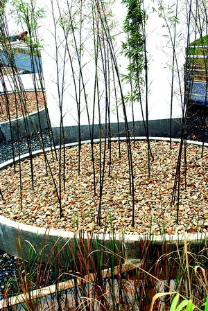 法國的lilika女士帶給人們的是“感悟迷你空間”,帶狀植物造型構成花園空間,環狀植物墻矗立在水渠中,既保證了水對植物的供給又充分體現了水在景觀設計中的優勢。