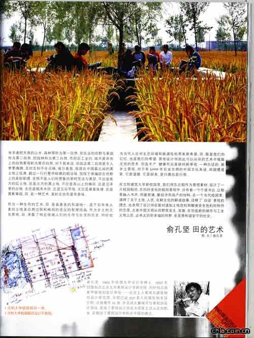 有學者把天然的山水、森林等稱為第一自然把農(nóng)業(yè)的田野與果園稱為第二自然.把園林稱為第三自然.而把后工業(yè)的、城市廢棄地上的自然景觀稱為第四自然、對于我來說,田園這第二自然更令人夢縈魂繞,無時無刻不在召喚.吸引著我我曾在中國最北端的黑土地上狂奔,跳過一行行整齊晾曬的稻谷垛,驚嘆于那編織在田野上的美妙肌理,全然不是人們所想象的那樣荒涼與蕭瑟不論是南方的紅土地.還是北方的黑土地不論是高山上的梯田還是沼澤里的臺地無論是稻禾水田,還是五谷旱地無論是桑基魚塘,還是蔗蕉果園,田是一種藝術美妙無窮而富有意味。 作為一種生存的藝術田,是真善美的和諧統(tǒng)一是千百年來人類對土地及自然過程和格局的適應的智慧結晶;作為鄉(xiāng)土的文化景觀,田.承載了特定地域人們的生存與生活的歷史同時也為當代人應對生態(tài)環(huán)境和能源危機帶來新希望,田.既是我們的記憶也是我們的希望景觀設計師因此可以從田的藝術中吸取無窮的營養(yǎng),創(chuàng)造豐產(chǎn),健康而且美麗的新景觀,一種白話的、新鄉(xiāng)土景觀對于有5000年農(nóng)業(yè)文明的中國文化來說。田園便是家.它是溫暖,它是甜美,是歸屬也是歸宿。 在沈陽建筑大學新校園里我們用東北稻作為景觀素材,設計了一片校園稻田在四時變化的稻田景觀中,分布著一個個讀書臺,讓稻香融書書聲用最普通、最經(jīng)濟而高產(chǎn)的材料.在一個當代校園里,演繹了關于土地。人民、農(nóng)耕文化的耕讀故事,詮釋了·白話·景觀的理念.也表明了設計師在面對諸如土地危機和糧食安全危機時所持的態(tài)度古老中國文明從田野里發(fā)生,發(fā)展,在創(chuàng)造新的城市與工業(yè)文明之后,必將又回到幸福的田野。享受那和諧安寧的社會。