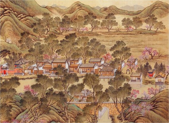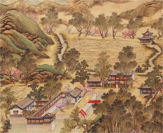 2、圓明園的特色文化景觀 田圃、村舍 這種景觀為何出現在這座皇家園林中?康熙年間的圣諭中就提出《重農桑以足衣食》,說明圓明園實在農耕社會背景下產生的園林。因此圓明園從初建時期便有“菜圃”、“魚池”、“耕知軒”一類的景點。雍正繼位后景點增多,出現了田字房、芰荷香、多稼軒、北苑山房等。乾隆登基后將原有觀農景點重新命名,如菜圃改稱杏花春館,耕織軒改稱水木明瑟,田字房改稱澹泊寧靜,多稼軒改稱映水蘭香,芰荷香改稱多稼如云,北苑山房改稱北遠山村。同時還對原有景點進行改建,并增建了新的景點,最典型的如杏花春館的春雨軒和若帆之閣。 乾隆繼位之前所寫《田字房記》稱:“……其北則稻田數畝,嘉禾生香藹聞于室。……蓋我皇父重農之心,雖于燕閑逰觀之所,亦未嘗頃刻忘也。”深深體會農業之重要,農田有了好收成,得到寰宇群黎之慶,皇帝的統治才有經濟基礎,才能穩固。因此圓明園在北半部有眾多的農田。在近北圍墻處建了一組名為耕耘堂。 乾隆說“山堂臨園墻,墻外田近閱。弄田園中多,莫如此親切。園中屬官物,墻外私墾別。當官與治私,盡力殊勤拙。何事不窮理,亦弗苛察屑。耕云見始春,因之生慰悅。墻內公田不如墻外私田耕墾之善,此亦人情,非可以法制禁令治之也。孟子所云公事畢,然后敢治私事,乃言其理而殊不近情。……”圓明園其中“若帆之閣”原為體察農情而建,體現對農業的重視。