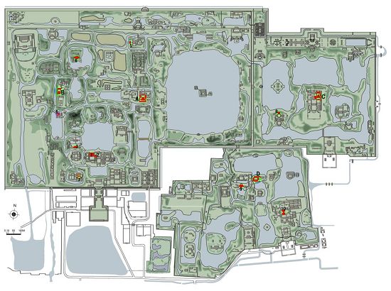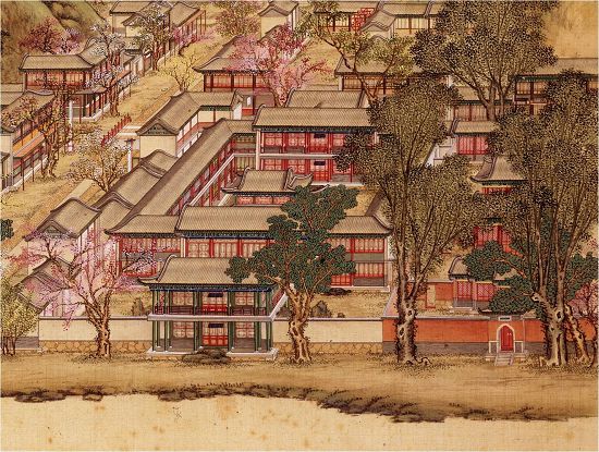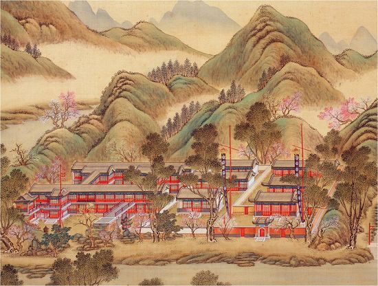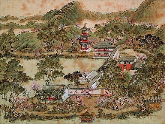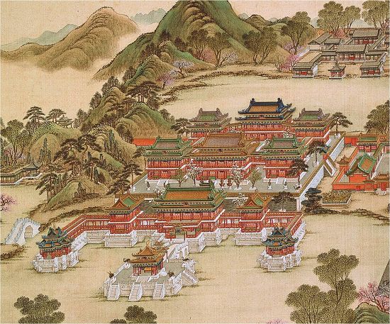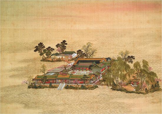 書院、書樓 圓明園中書院、書樓也有多處,這與帝王長期住園有關,同時也反映著清代前期帝王對文化的重視。康熙年間編纂、雍正四年出版了《古今圖書集成》,乾隆年間用十年工夫篡修了《四庫全書》,同時出版了《四庫全書總目提要》。于此同時,圓明園中也建造了一系列的文化建筑:雍正時期建了碧桐書院、四宜書屋;乾隆時期建了匯芳書院、文源閣,以存儲《四庫全書》;同時,在長春園的霞翥樓儲《四庫全書薈要》;在長春園的澹懷堂儲《古今圖書集成》。此外,在御園的各個景點還設有許多書屋、書室等,冠以書屋之名的有九洲清晏的長春書屋,鏤月開云的養素書屋,濂溪樂處的味真書屋,北遠山村的湛虛書屋,秀山房的怡然書屋,藻園的夕佳書屋、貯清書屋,獅子林的探真書屋、四藏書屋,法慧寺的靜娛書屋,如園的含芳書屋,茜園的韻泉書屋等等。