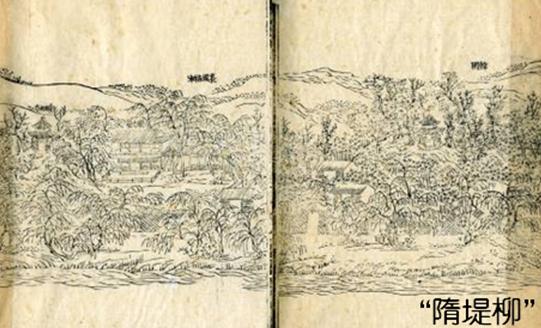 隋煬帝征召大批民夫開挖運河的同時,接受虞世基的建議在河堤兩岸大量載插柳樹的事,柳樹還有系舟的功能。 明王士禎《浣溪沙》:"北郭清溪一帶流,紅橋風物眼中秋,綠楊城郭是揚州。西望雷塘何處是,香魂零落使人愁,淡煙芳草舊迷樓。"