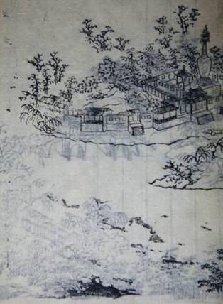 御碑亭附近"古松參天,與榆槐相間,松下有亭曰聽濤。斗姥宮在其后,又西為曲廊水榭,低點水際。其北為邃室,室西長廊數折為廳,顏曰綠楊城郭;廳左為棲鶴亭,老松數株,鶴巢其上,故名。庭前稍右西出為芍園。" (《揚州畫舫錄》)