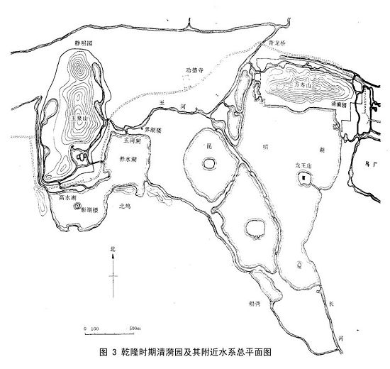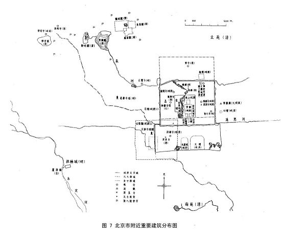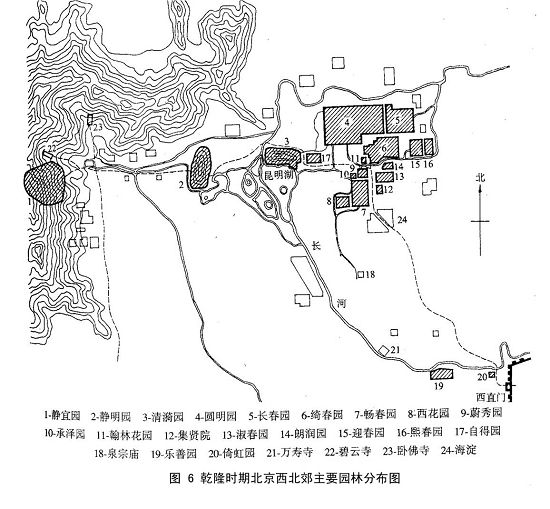 暢春園在明代的基礎上建水景園,香山、玉泉山都因山就水巧于布局。清漪園以萬壽山為主體,成倍地向東擴展了湖面并開辟了向圓明園、北邊水稻田供水和增加深遠感的后溪河。圓明園因“丹陵沜”的沼澤地并連和疏通水系,并以挖土筑自然起伏的人工土山。為我們營造文人自然山水園提供了經典的教科書。這一綠色護心網為北京城市西北太行山下的沖積平原水土保持、減少沖刷、降低氣溫和賞心悅目的休閑游覽提供了綜合的保護作用。南有南苑和團河行宮,西有潭柘寺、戒臺寺,北有十三陵園林寢宮,護心網基本從北、西、南三面維護了北京。