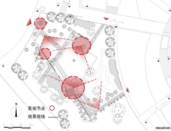 1)具有嘗試意味的設計理念:以“學”為核心,中國傳統造園思想、元素以及細部和西方現代造園中抽象、簡潔、動態的視覺形式相融合為切入點,向人們展示設計師虛心向前人、大師學習的創作態度;