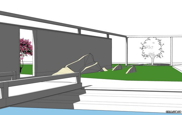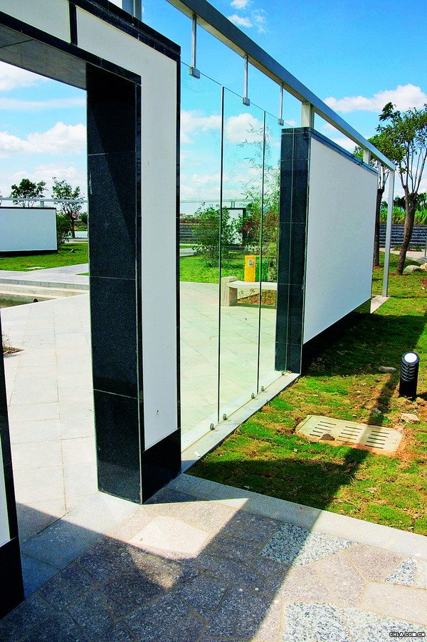 (4) 潔細致的細部設計:白墻的邊飾、美人靠的細膩、置石的肌理、雕塑的精致無不表現西方現代造園的抽象簡潔,無不隱喻中國傳統造園細部的精美。