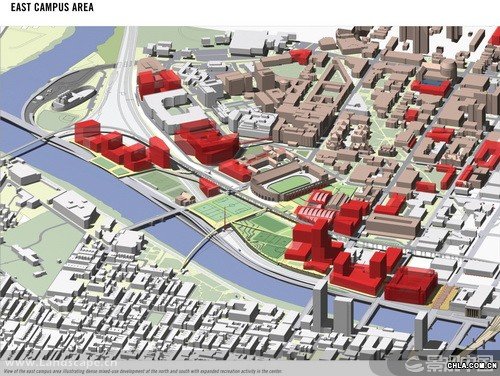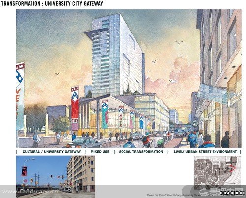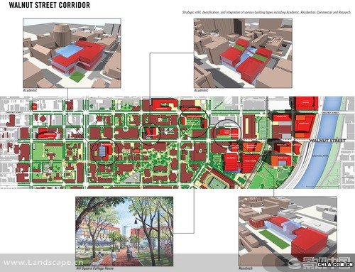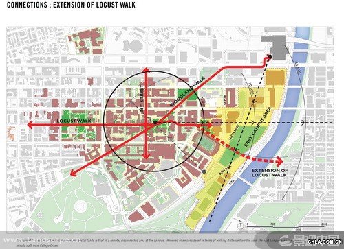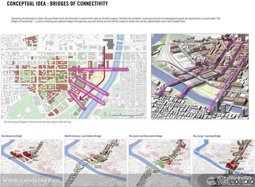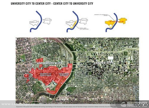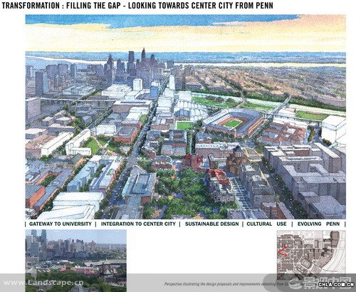 賓大交通樞紐規(guī)劃描繪了賓夕法尼亞大學(xué)的發(fā)展,提出了當(dāng)代城市規(guī)劃與景觀設(shè)計(jì)的一個(gè)重要的功能。它為城市內(nèi)的大學(xué)與其周邊結(jié)構(gòu)相結(jié)合以創(chuàng)造出一個(gè)既利于公共環(huán)境改善也利于大學(xué)發(fā)展的虛擬的框架提供了很好的實(shí)例。結(jié)果就是創(chuàng)造出了一個(gè)動態(tài)的具有混合功能的地區(qū),一方面是對工業(yè)用地的再次利用,另一方面是將原有的沿Schuylkill河濱的交通通道轉(zhuǎn)變?yōu)檫B接城區(qū)與大學(xué)城的有活力的門戶。