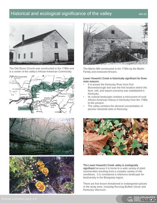 這是該地區(qū)這一類型的管理規(guī)劃中首次出現(xiàn)如此全面的作品。這里需要細(xì)心的規(guī)劃和分析,不是去建造新東西,而是要考慮如何保護(hù)這里重要的景觀。這一項(xiàng)目挖掘出了關(guān)于Lower Howard河的多層次的素材,并且提出了關(guān)于如何延續(xù)這些素材的保護(hù)方案。