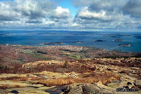 阿卡迪亞國家公園位于美國緬因州海岸線的一個沙漠山島上,總占地面積190平方公里,是美國面積最小的國家公園之一。這是一個只有一條細小的大陸橋連接著大陸的冰川地貌的球形島嶼,島內有大面積原始林,幾個清澈見底的淡水冰川湖泊和大西洋海岸第一高峰,凱迪拉克山,還有一條非常漂亮的海濱路。這里是美國的最東北部,加上背山面海,可以看到整個美國最早的一抹晨光。正因為擁有海岸、貝殼沙灘、森林、湖泊、峽灣和各種自然保護動物等多元景觀,來訪的游客人次竟排名全美國家公園的前幾名,還被列為全美十大最受歡迎的國家公園。