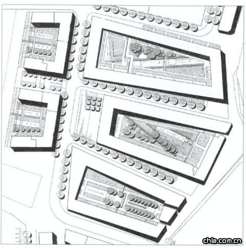 數理思考當代德國景觀中的靜默與沉思,是以觀念來表達的。在數理關系中,用抽象的幾何形體來完成線條的交織、轉折,圖案的重迭、轉換,矩陣的相對與穿入坡中的巨大石墻對應……。它很少有完美的古典對稱構圖,如法國式的水池、花壇、噴泉、放射狀的路。它遵循理念和關系,直接而明晰,觀念不用太多的修飾和襯托,于是我們看到的是不對稱的簡潔幾何關系,一種解讀自然宇宙和此片空間的理念,它給人更多的是靜思后思考的愉悅和理性的磨練,而不是情感上和視覺上的快樂,這也是與美國,東方景觀最大的差異。